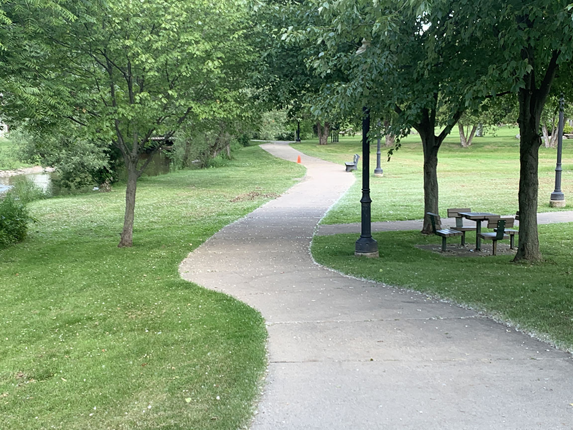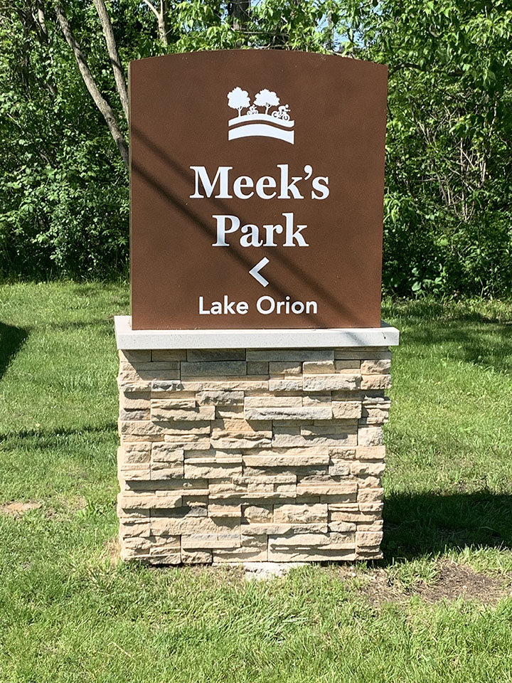The park is accessed at several points with pedestrian access at Glenn Street, Broadway Street, a pedestrian bridge at Washington Street, and a pedestrian bridge from the Lake Orion Art Center (near Children’s Park). The key amenity to Meek’s Park is the paved, pedestrian path which runs along Paint Creek and provides opportunity for walk, running, and cycling.