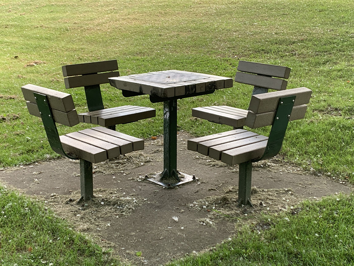 Less passive recreation is also available as among the scenic backdrops there are various nodes of seating scattered along the path and a checkerboard table.